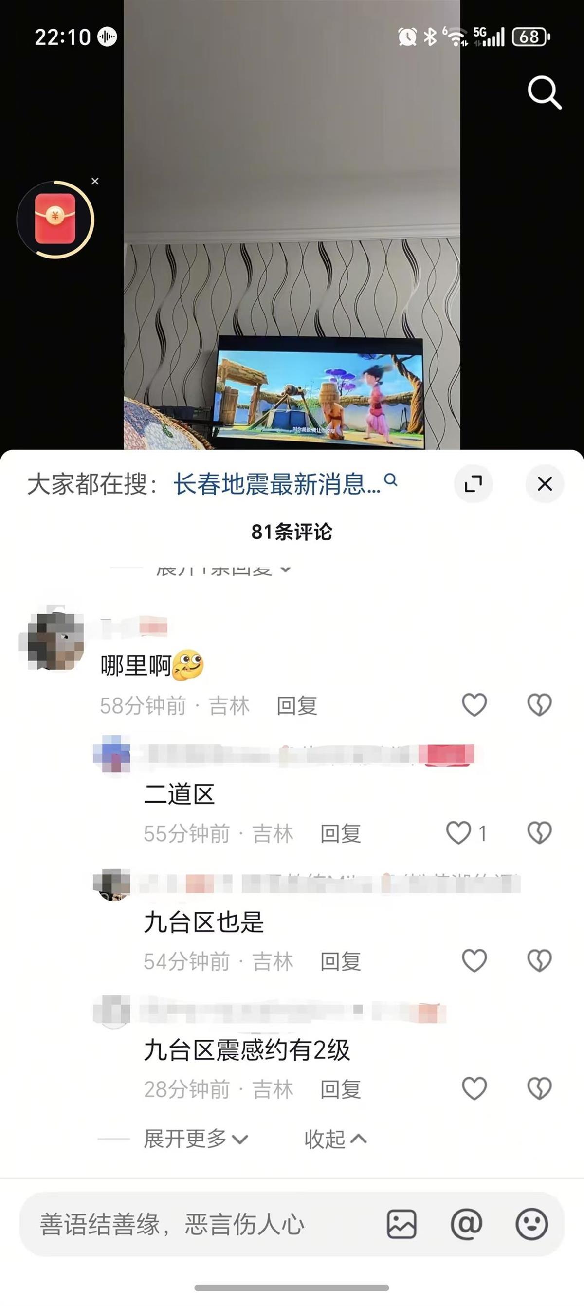 网友发帖称长春疑似发生地震